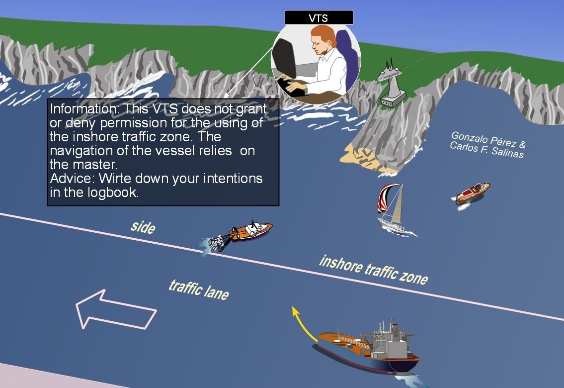 The role of the VTS is to gather information about why the vessel has made that decision, as well as to alert other users navigating in the ITZ that they may encounter an unexpected vessel in this area. In addition to this, the VTS also has to track the route of the vessel and process all the information concerning this case to handle it to the Maritime Authority, such as, plotters, voice transcriptions, and all prevailing circumstances that affect the case, for instance, weather and traffic density, among others.
