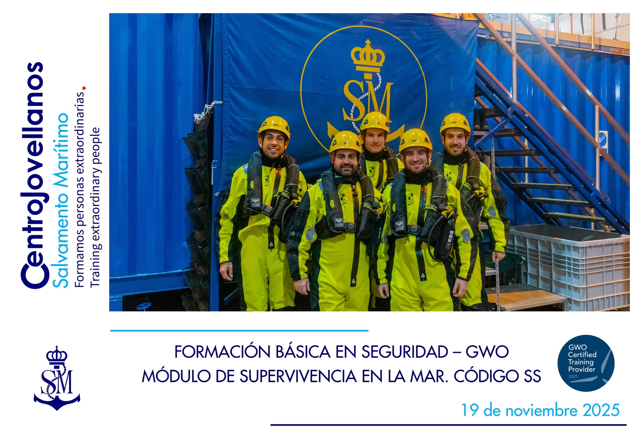 El Centro Jovellanos está acreditado por Global Wind Organization (GWO) para impartir el curso "Formación Básica en Seguridad-GWO, Módulo Supervivencia en la mar. Código SS", al personal que trabaja en la industria eólica marina o industrias asociadas que pretendan cumplir con los requisitos de formación establecidos en el módulo de Supervivencia en la Mar del BST V19 (Basic Safety Training) de la GWO, (Basic Safety Training, Global Wind Organisation), como parte de la formación necesaria para responder ante una emergencia.